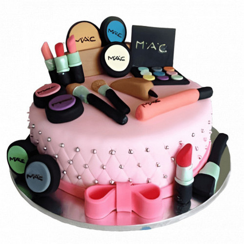 The cake is decorated with nail polish, lipstick, eye shadow, and other makeup essentials. This delectable cake is the ideal choice for a beauty queen. The moist and soft cake is equally delicious and gorgeous.