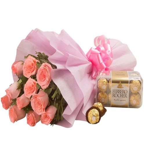 Send a wonderful message to your loved family members to celebrate their day to make them feel loved. This is among the most beautiful gifts because it is filled with joy and happiness. It will make your beloved ones and make them laugh with joy. This is an exceptional gift that you will want to be sure of. This is a bouquet of six gorgeous pink roses that are carefully packed in cellophane, with the matching bow tied with ribbon to decorate the gift elegantly. This is the ideal option if you're keen to impress the person in your life on special occasions like their birthday, Valentine's Day, and anniversaries. The package also includes an extremely delicious Ferrero Rocher Chocolate Box, which is packed with 24 delicious and smooth soft milk chocolate pieces that are breathtaking for chocoholics. Delicious chocolates with crunchy and crispy hazelnut outer are wrapped individually for freshness. This product includes A Bunch of Six Pink Roses With Matching Ribbon Bow tied with 24 Pcs Ferrero Rocher Chocolate Box.